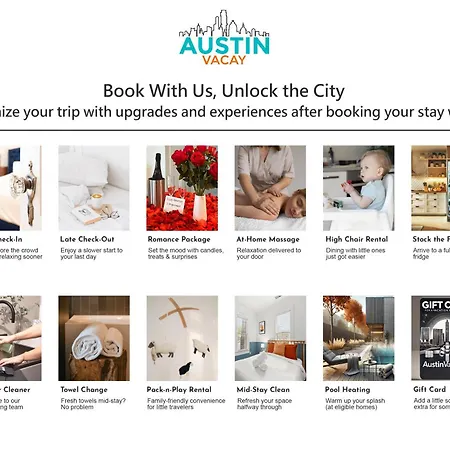 La experiencia culinaria en Pet Friendly Atx Escape With Game Room And Free Parking es otra de sus grandes ventajas. En las cercanías encontrarás una diversa oferta gastronómica que va desde exquisitos restaurantes locales hasta acogedores cafés, garantizando que tu paladar encuentre siempre algo nuevo por descubrir. Aquí, las opciones son infinitas.